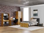 Теплую древесную текстуру цвета «Дуб Вотан» контрастно подчеркивает строгий графитовый оттенок «Металл Бруклин». Это создает спокойную и гармоничную атмосферу, которая идеально подходит для подростка.