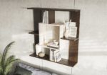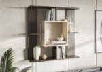 Современная навесная полка в комнату с множеством ниш.