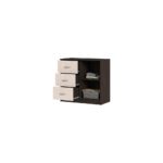 Комод Бася КМ 553М с 3-мя выдвижными ящиками и распашной дверцей отличается необычной раскладкой и удобными широкими ручками. Темный оттенок корпуса отлично сочетается со светлым, подчеркивая рисунок дерева на светлой ЛДСП. Выбор этой мебели поможет обустроить дом по выгодной цене, не выходя из Собственной комнаты.