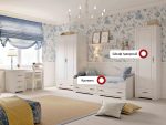 Детская модульная система “Прованс” не только функциональна, но и красива. Рамочные фасады с фрезеровкой поддерживают романтичный стиль французской провинции, а ручки-кнопки придают мебели особое обаяние, свойственное прованскому стилю.