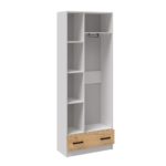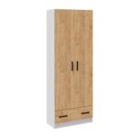 Шкаф для одежды выполнен в белом корпусе с фасадами дуб крафт золотой. Благодаря небольшой глубине 37,5 см шкаф можно использовать в любом пространстве — как шкаф в прихожую, шкаф в гостиную, спальню или детскую и даже шкаф на балкон. Наполнение шкафа- отделение с полками и полка с выдвижной штангой, внизу вместительный ящик.