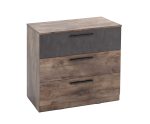 Комод «Глазго» имеет три вместительных выдвижных ящика на шариковых направляющих, позволит обеспечить удобное хранение ваших любимых вещей.