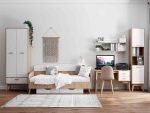 Она включает в себя различные элементы: шкаф, стол, стеллаж и кровать, которые можно комбинировать в зависимости от потребностей и предпочтений.