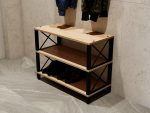 Обувница “Бонн” — это идеальное решение для организации хранения обуви в прихожей. Она выполнена из металлических рамок, между которыми расположены полки из ЛДСП в оттенке «Натуральный светлый дуб», что придает ей особый шарм и делает идеальным дополнением для интерьера в стиле лофт.