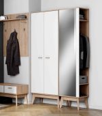 Шкаф с зеркалом «Калгари» выполнен в скандинавском стиле. Зеркало в полный рост, расположенное на фасаде, расширит пространство вашей прихожей и сделает сам шкаф незаметным. Шкаф открыт с правой стороны, внутри крепится штанга для одежды на плечиках, вверху и внизу располагаются вместительные глубокие полки.