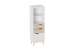 Шкаф-стеллаж «Соната» будет одинаково гармонично смотреться как в составе мебельной композиции, так и установленный отдельно. Шкаф с непроходными боковыми стенками имеет два отделения. Верхнее отделение — открытое, с полкой. В нижнем отделении находятся два выдвижных ящика с фасадами, декорированными прорезной ручкой, в цвете «Дуб Сонома», и распашная дверца.