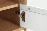 В дизайне отчетливо улавливаются отсылки к эстетике модерна середины 20 века: чистые линии корпуса, использование белого цвета в отделке фасадов, расставленные в стороны высокие стильные опоры, выполненные из массива березы, как и ручки изделия.