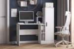 Компьютерный стол с просторной рабочей поверхностью, на которой поместятся компьютер и канцелярские принадлежности. Стол оборудован полками и шкафчиком для хранения. Есть 3 варианта цвета стола: Вариант 1: Корпус ЛДСП Белый с тиснением «Древесные поры», ЛДСП Дуб Крафт Золотой, Фасад ЛДСП Дуб Крафт Золотой Вариант 2: Корпус ЛДСП Белый с тиснением «Древесные поры», Фасад ЛДСП Белый с тиснением «Древесные поры» Вариант 3: Корпус ЛДСП Белый с тиснением «Древесные поры», ЛДСП Дуб Сонома, Фасад ЛДСП Белый с тиснением «Древесные поры» Корпус ЛДСП Белый с тиснением «Древесные поры», Фасад ЛДСП Белый с тиснением «Древесные поры». Сборка стола не универсальная. Тип петель — без доводчика «Boyard» / «Marshall» Направляющие — металлические, роликовые «Boyard» / «Marshall» Опоры-подпятник пластиковые, цвет Черный, ручка пластиковая, цвет Черный. гарантия 2 года