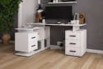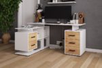 Компьютерный стол СМКУ-4 удобно расположить в любой комнате, угловая конструкция зонирует помещение. По двум сторонам располагаются выдвижные ящики и с левой открытые полки. Стол изготовлен из высококачественного ЛДСП с тиснением «,Древесные поры»,. Поставляется в разобранном виде, в комплекте фурнитура и инструкция по сборке. Компьютерный стол представлен в трёх вариантах: Вариант-1: Корпус ЛДСП Белый с тиснением «Древесные поры», Фасад ЛДСП Дуб Крафт Золотой Вариант-2: Корпус ЛДСП Белый с тиснением «Древесные поры», Фасад ЛДСП Белый с тиснением «Древесные поры» Вариант-3: Корпус ЛДСП Дуб Сонома, Фасад ЛДСП Белый с тиснением «Древесные поры» Корпус ЛДСП Белый с тиснением «Древесные поры» Сборка стола не универсальная. Направляющие — металлические, роликовые «Boyard» / «Marshall» Тип петель — без доводчика «Boyard» / «Marshall» Лицевая фурнитура — опора пластик, Опоры-подпятник пластиковые, цвет Черный Гарантия 2 года.
